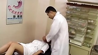Saki Shiina has hairy pussy measured and sucks doctor phallus