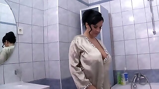 Crazy milf kneads her big tits in a soapy bubble bath