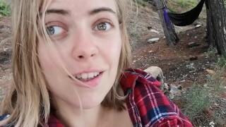 Risky pussy play and creamy cum in the camp near the cliff! Can you stand the energy of storm?