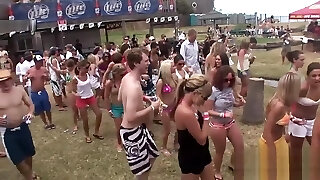 Honey gets gang humped by a group of horny guys outdoors