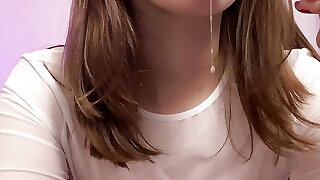 Nerdy brunette Stella H. spits on her pussy to get it nice and humid