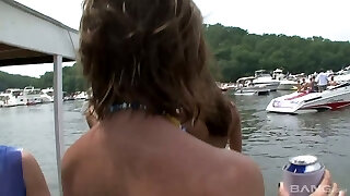 Mind-blowing slim teens flaunting on a soiree on a boat topless