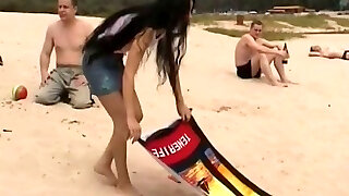 Japanese Babe Putri Cinta Playing with Her Vulva On Empty Beach