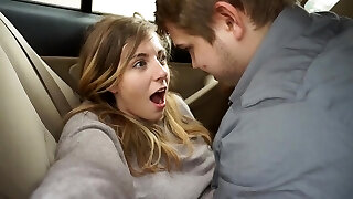 Gorgeous blonde stewardess Christen gets wedged hard in the car