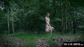 Skinny doll fucks herself hard in the forest