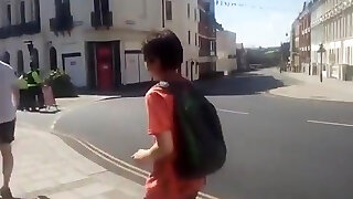 Outdoor rough bareback and POV blowjob with two lads