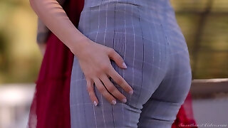 Taking a walk alluring Aiden Ashley is ready to go lesbian with a strap-on