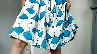 Bright pink sundress of lovely nympho Beth gets pulled down during stripping