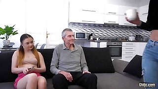 Redhaired Teen Dolly Littles Pussy Swallows Up Old Mans Hard-on