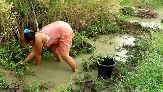 Mature Milf Hairy Pussy And Fat Tits Jiggle While Cleaning The Bathroom