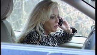 Hot blonde office assistant Chloe Toy jerks off on desk in garters and nylons