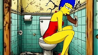 The Simpsons Porn Parody: Magnificent Cheating Wife Marge Lets a Ebony Dude Fuck Her In The Public Toilet