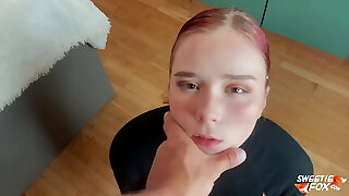 Adorable redhead teen with angelic eyes gives amazing head