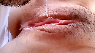 Extreme Close Up Love Button ! Eating Squirting Unshaved Wet Pussy
