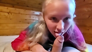 Ash-blonde teen swallowing my cum
